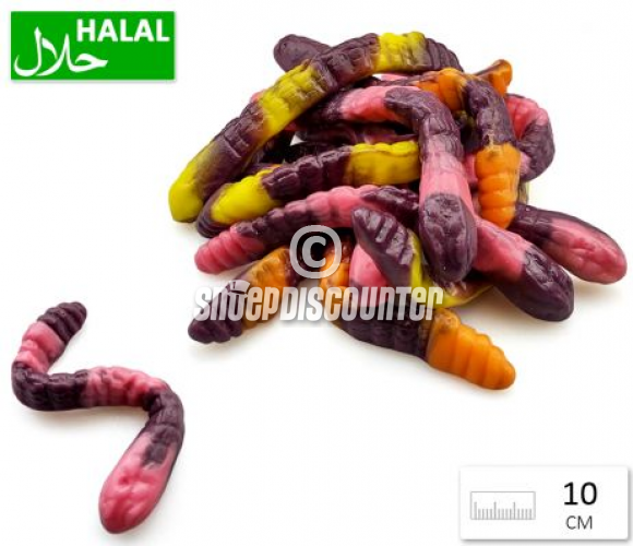 glucosesiroop, suiker, water, runder halal gelatine, gemodificeerd aardappelzetmeel, acidultant: E330, E270; coatingsmiddel: plantaardige olie (palm), E901, E903; kunstmatige aroma, kleurstoffen: E122, E102, E110, E133, E124.